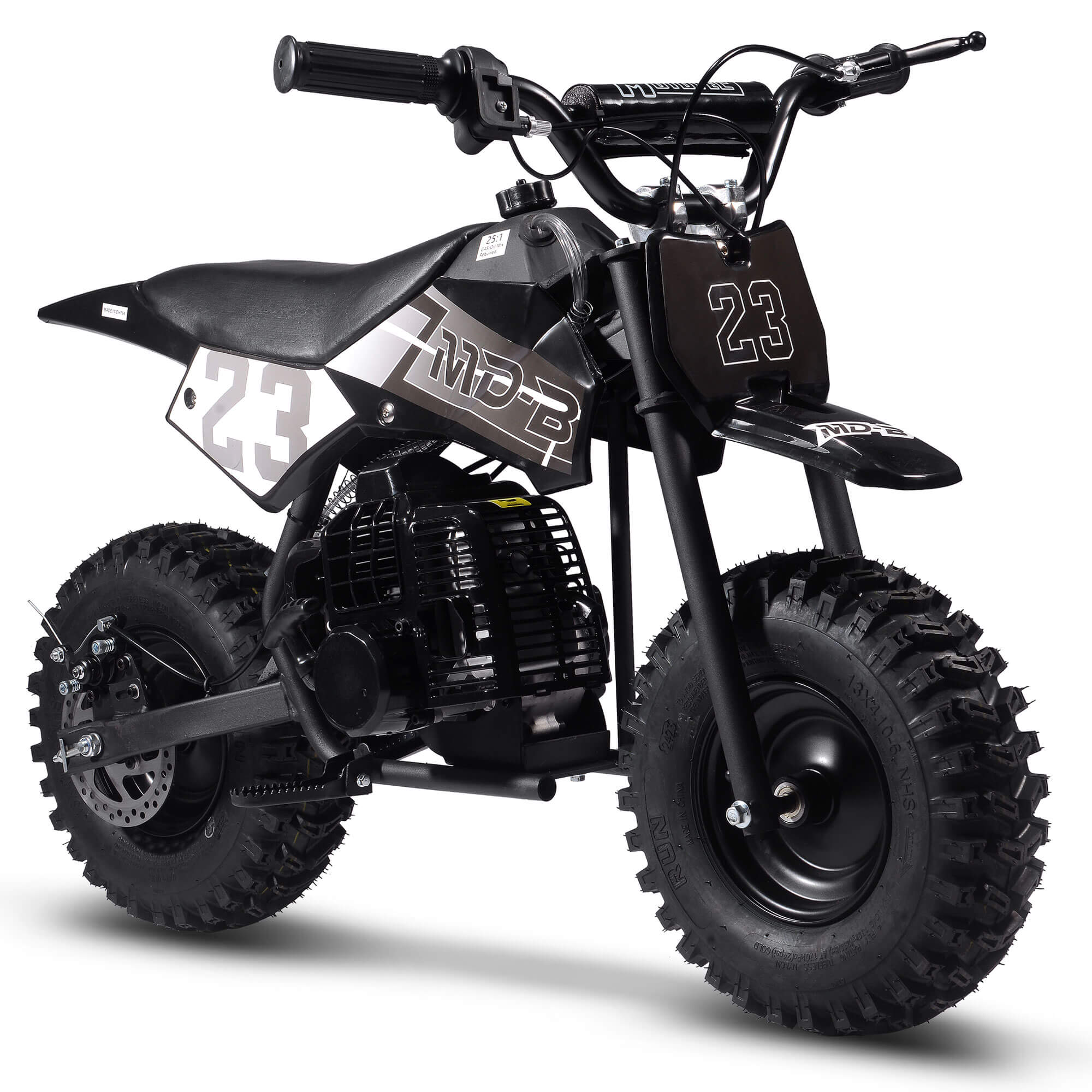 The MotoTec BIG Supermoto 50cc 2-Stroke Suspension Kids' Gas Dirt Bike, now featuring larger knobby tires.  The perfect dirt bike to start your kid's adventure.