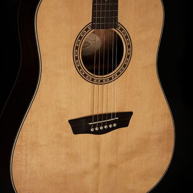 The Washburn Heritage 10 Series HD10S Acoustic Guitar features a solid Sitka spruce top with cathedral peak scalloped bracing for superior tone tha...