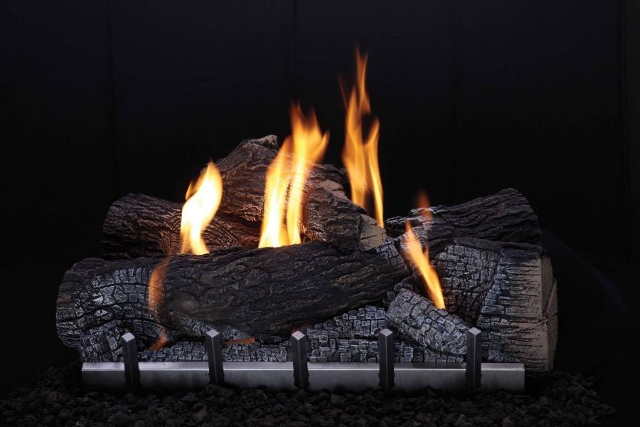 The Empire Carol Rose ONR/ONI Coastal Outdoor Harmony Vent-Free BurnerĀ generates plenty of flames and heat to complement the massive concrete log sets.