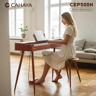 The CAHAYA 88-Key Full Size Digital Piano comes with advanced features such as 380 different sounds, a sturdy wooden body, and USB-MIDI support. ...