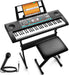 • Complete Accessory Set: The music keyboard for adults comes with a full set of accessories, including a sturdy stand, thickly padded piano bench that folds easily and microphone*1. It also supports a DC-9V power input for a steady and reliable power source, providing you with everything you need for practice and performance.