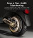 • Advanced Triple Braking Systems: With a front drum brake, rear disc brake, and EBAS, this e-scooter ensures precise, reliable stopping power—whether you’re navigating busy city streets, descending steep hills, or cruising through offroad trails. Every stop is as smooth as your ride, giving you confidence in every terrain.