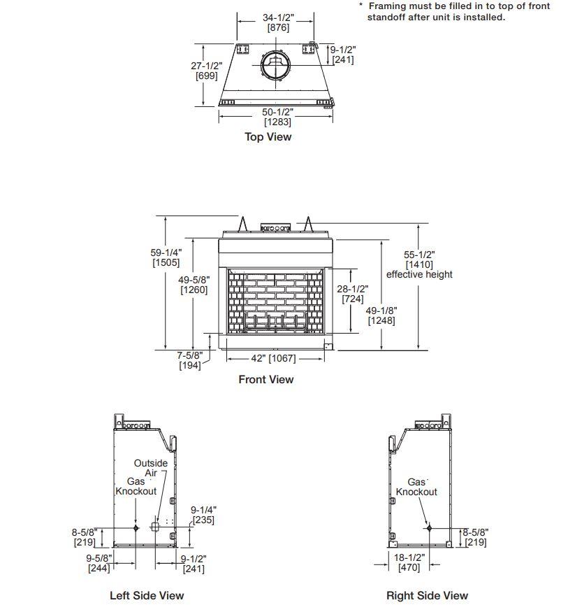 • Two Gas Knockouts- Easy adaptability:  With openings for a gas line on either side of the firebox, you can easily add an optional gas log set to your wood-burning fireplace.