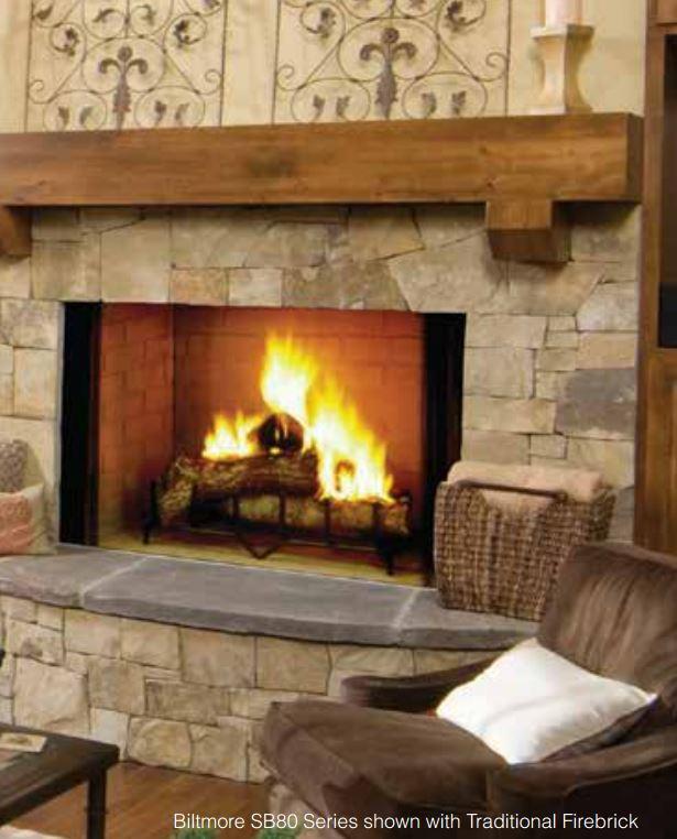 The Majestic Biltmore Series SB80 42" Radiant Wood Burning Fireplace comes with:  Outside Air Kit, Dual Gas Knockouts, and Full Refractory Lining in Traditional Molded Firebrick.