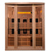 The Golden Designs 3 Person sauna offers 9 total Heaters, 6 PureTech Near Zero EMF FAR infrared Carbon Energy Efficient heating panels (including an industry-leading foot heater) that produce a wider, softer heat that is evenly distributed throughout the sauna.