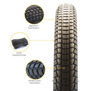 This is the Eastern Bikes Replacement E304 20" Tire KIT, 1 Pack. Includes: 1 E304 White or Pink Tire - 20" x 1.75" - Grippy Eastern Bikes formul...