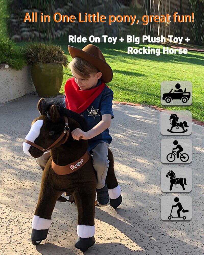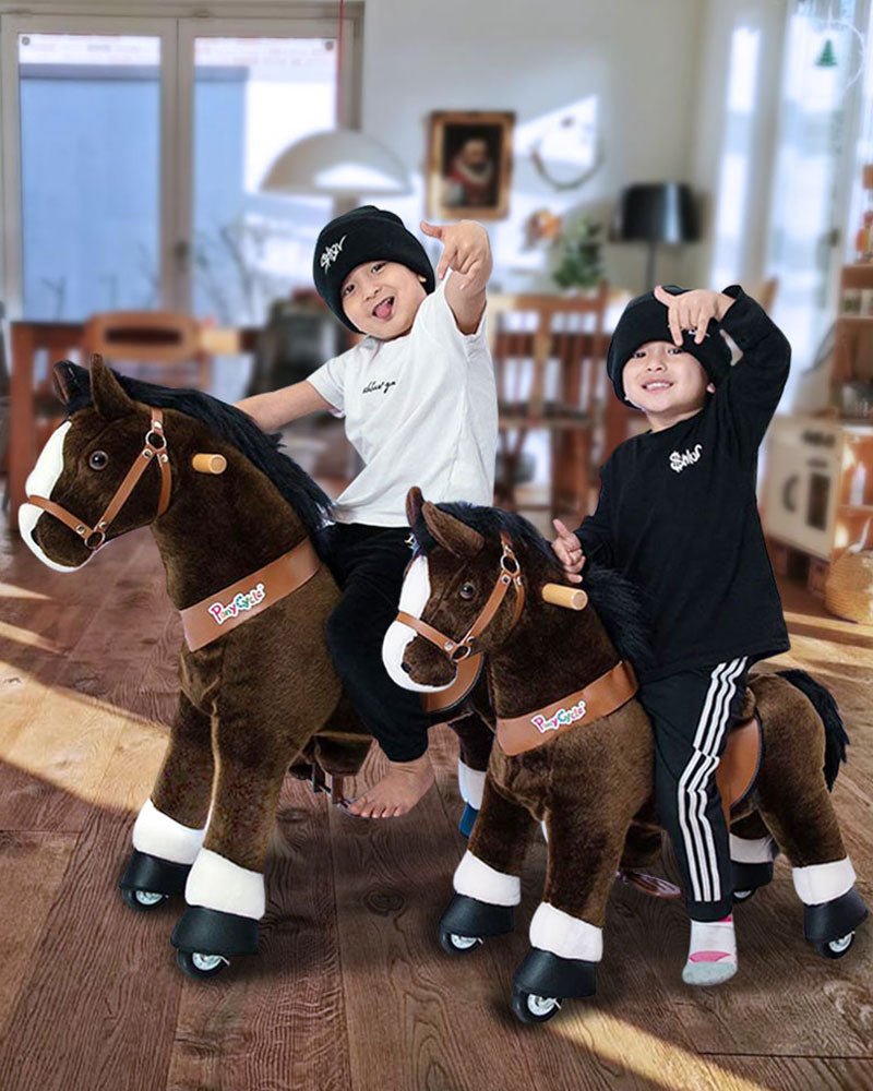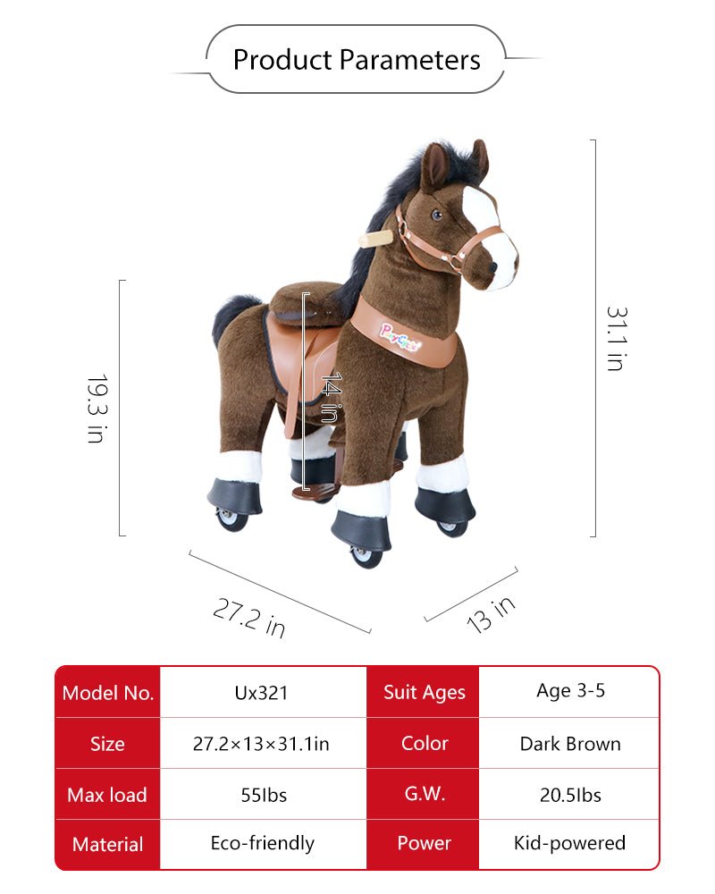 The all-new Pony Cycle Vroom Rider Ride-On Ux-Series DARK BROWN Horse, WHITE HOOF is one of the first simulation animal toys in the world, allowing kids to exercise and ride a real-life horse with no battery needed.