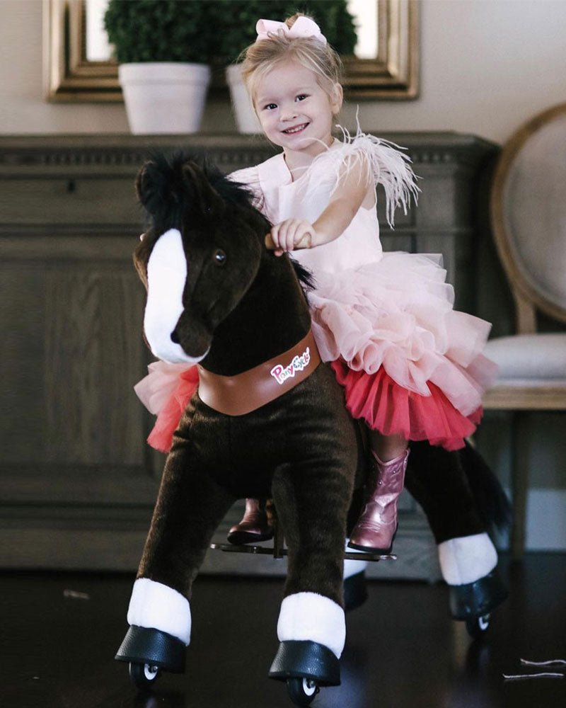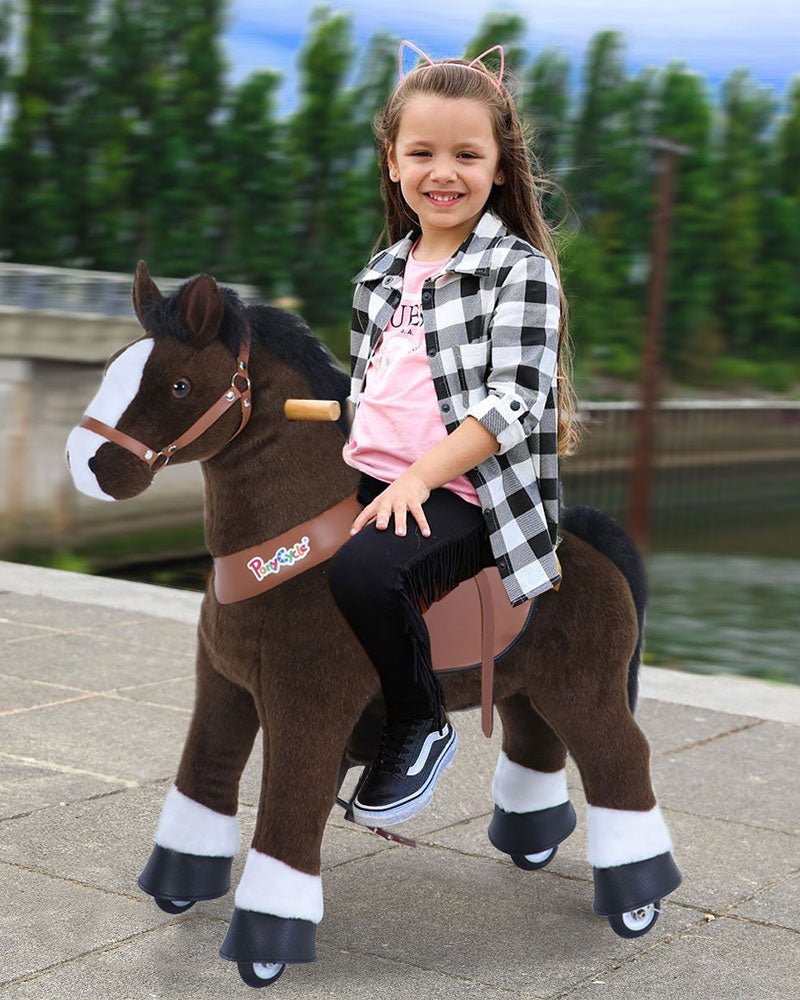 2025 Pony Cycle Ux-Series DARK BROWN HORSE Ride-On Kids Toy, WHITE HOOF, Vroom Rider