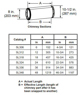 Majestic 6" (150mm) SL306 Pipe Section for SL300 Series Wood Burning Pipe Product Specifications: Inner Diameter: 8" Outer Diameter: 10-1/2" ...