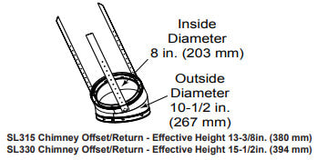 Majestic 15 Degree Elbow for SL300 Series Wood Burning Pipe Product Specifications: Includes offset and return Inner Diameter: 8" Outer Diame...