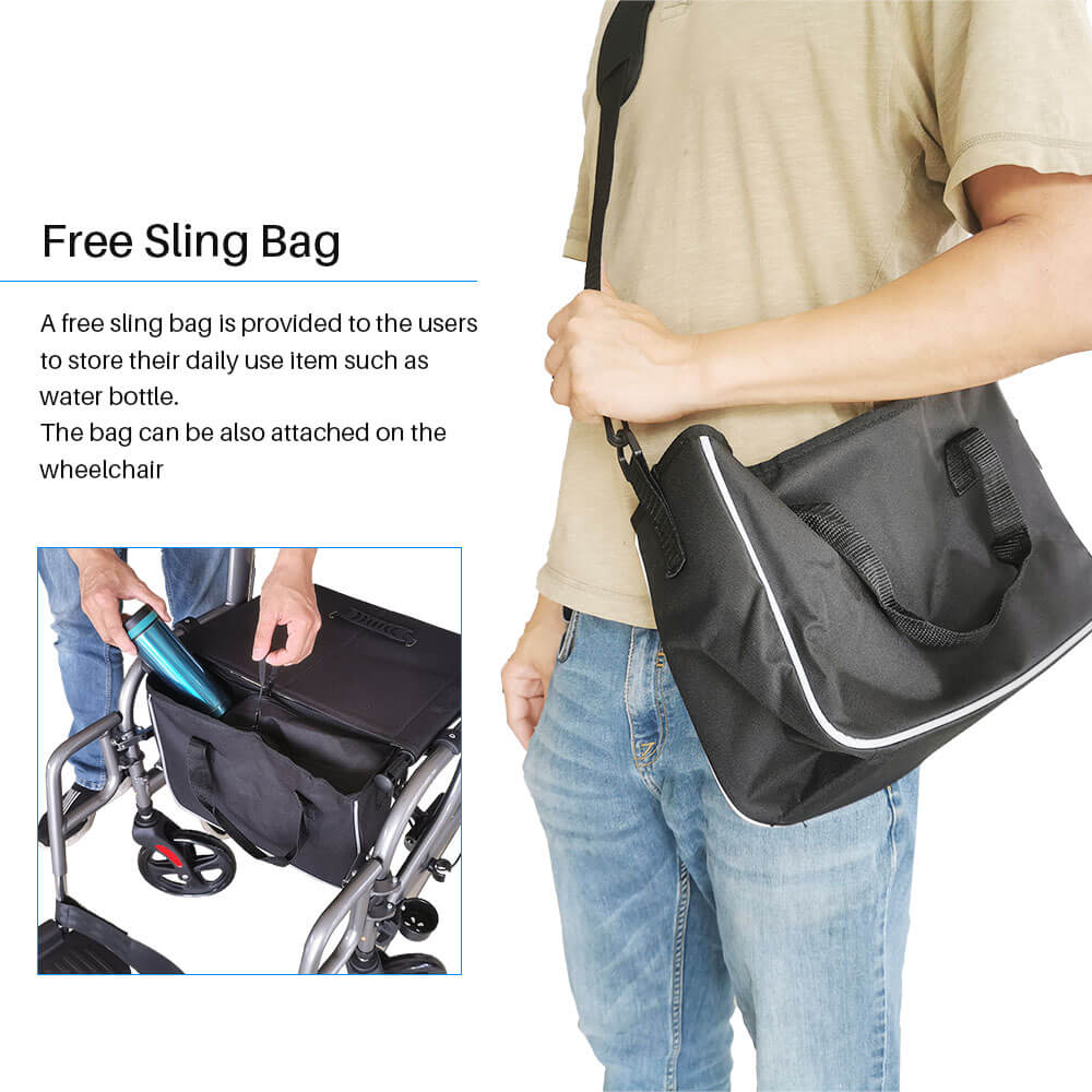 The Foldawheel Rollator Walker is lightweight at only 21.8 lbs (9.8kg).  Use it to practice daily walking or to support your walk.  You can even sit down when you get tired!