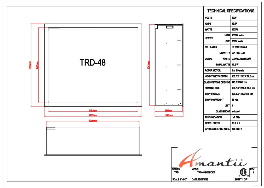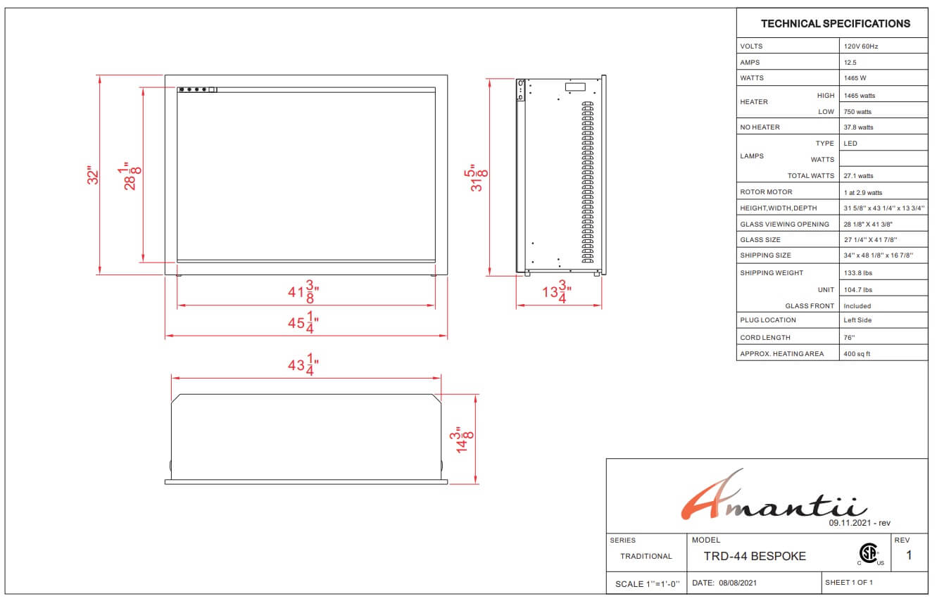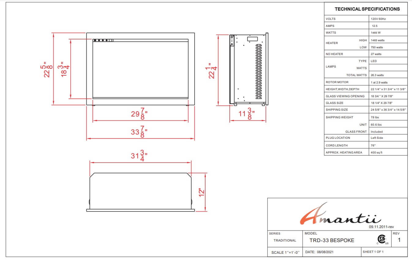 The Amantii TRD BESPOKE Traditional Indoor/Outdoor Electric Fireplace/Insert has a timeless yet elegant style and superior quality.