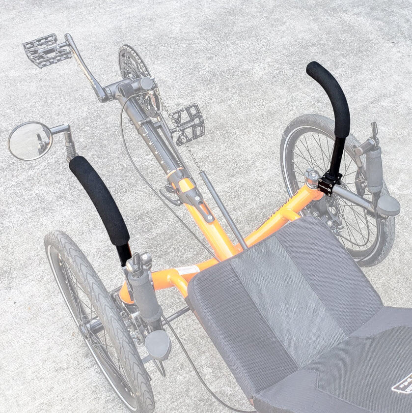 • These arms provide a medium sized, comfortable grip area to help you get on and off your Catrike. They can also be used to mount mirrors and accessories. We also offer a larger version for those that need more help getting on and off.