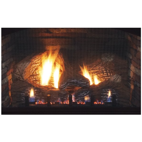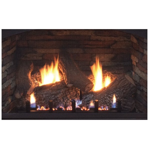 The realistic flames in this Empire White Mountain Hearth VAIL VFPA Series 36-inch Premium Vent-Free Gas Fireplace are produced by ceramic pellets in a burner tumbler, producing up to 36,000 BTUs to heat your room.
