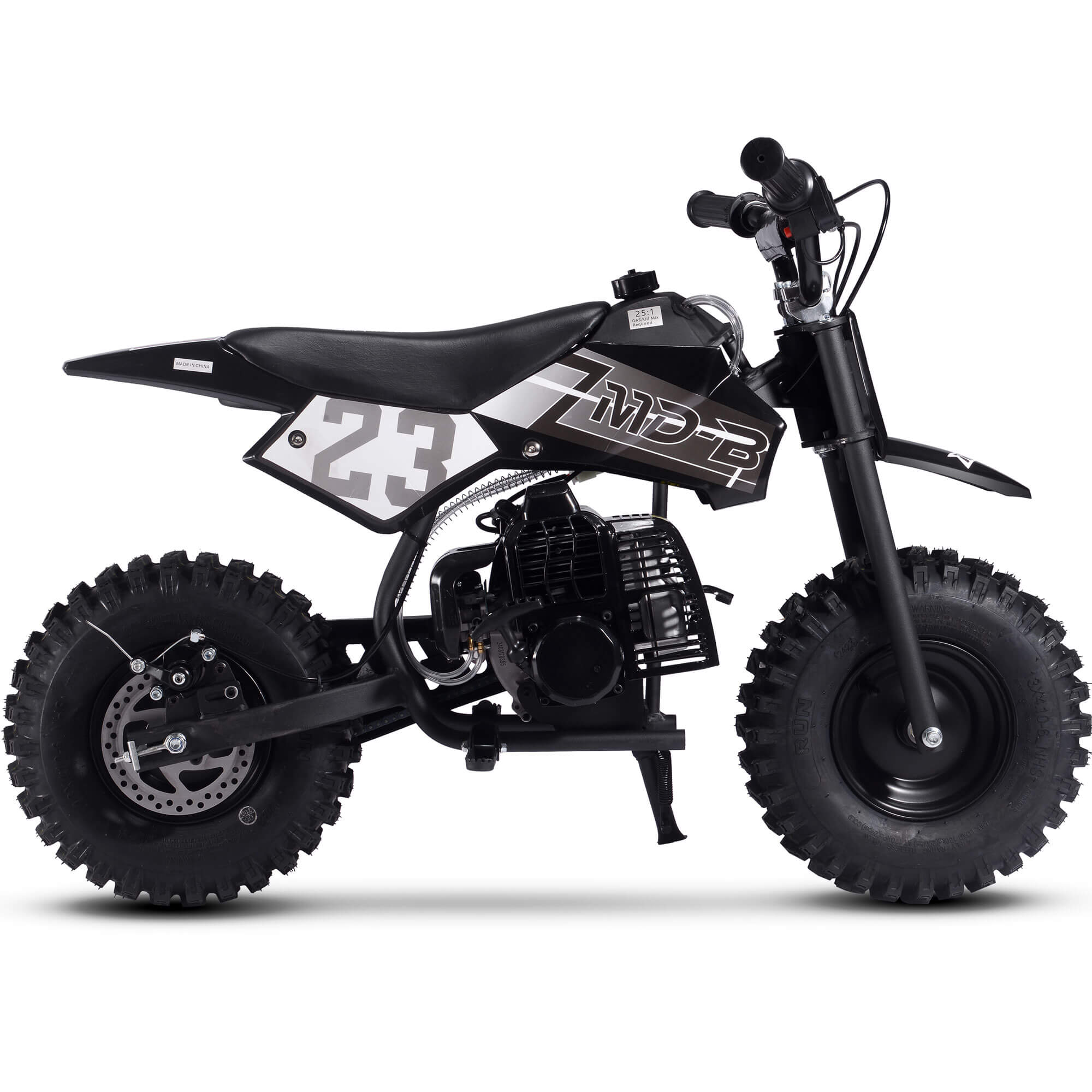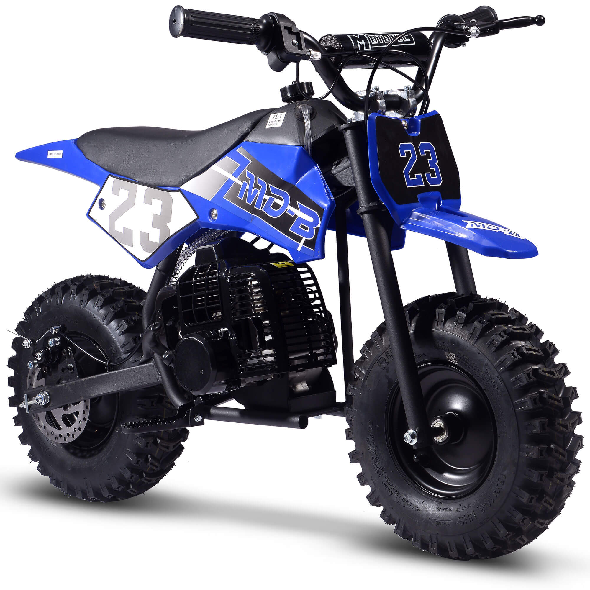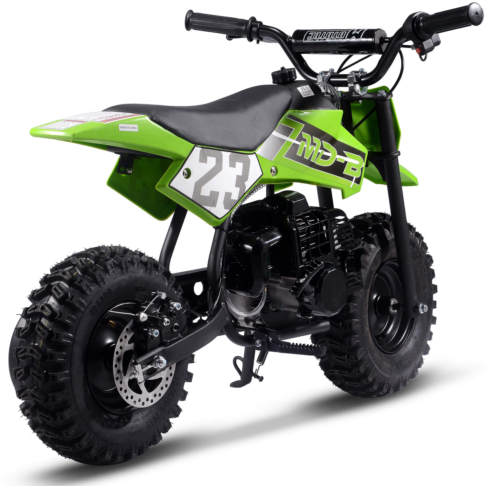 The MotoTec BIG Supermoto 50cc 2-Stroke Suspension Kids' Gas Dirt Bike, now featuring larger knobby tires.  The perfect dirt bike to start your kid's adventure.