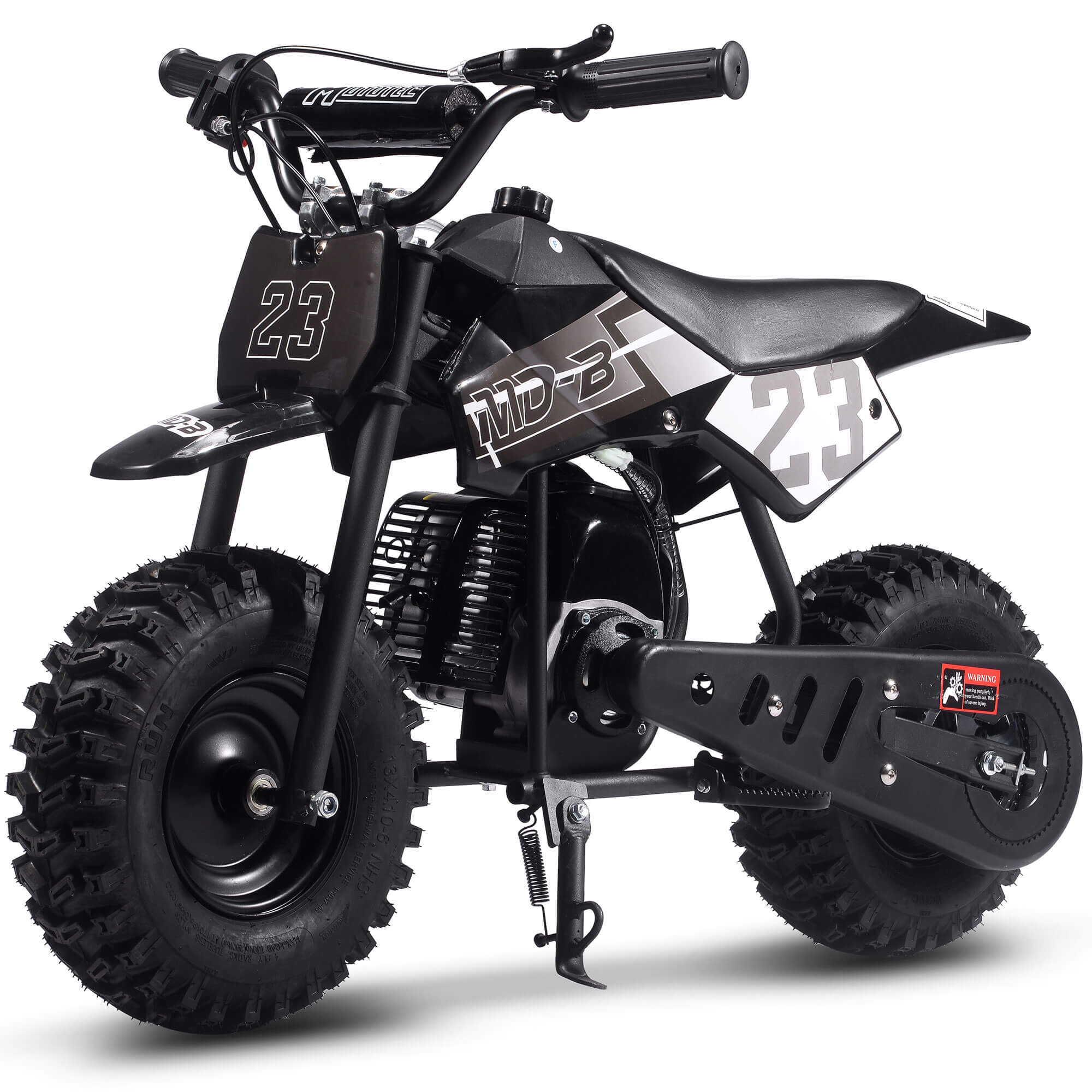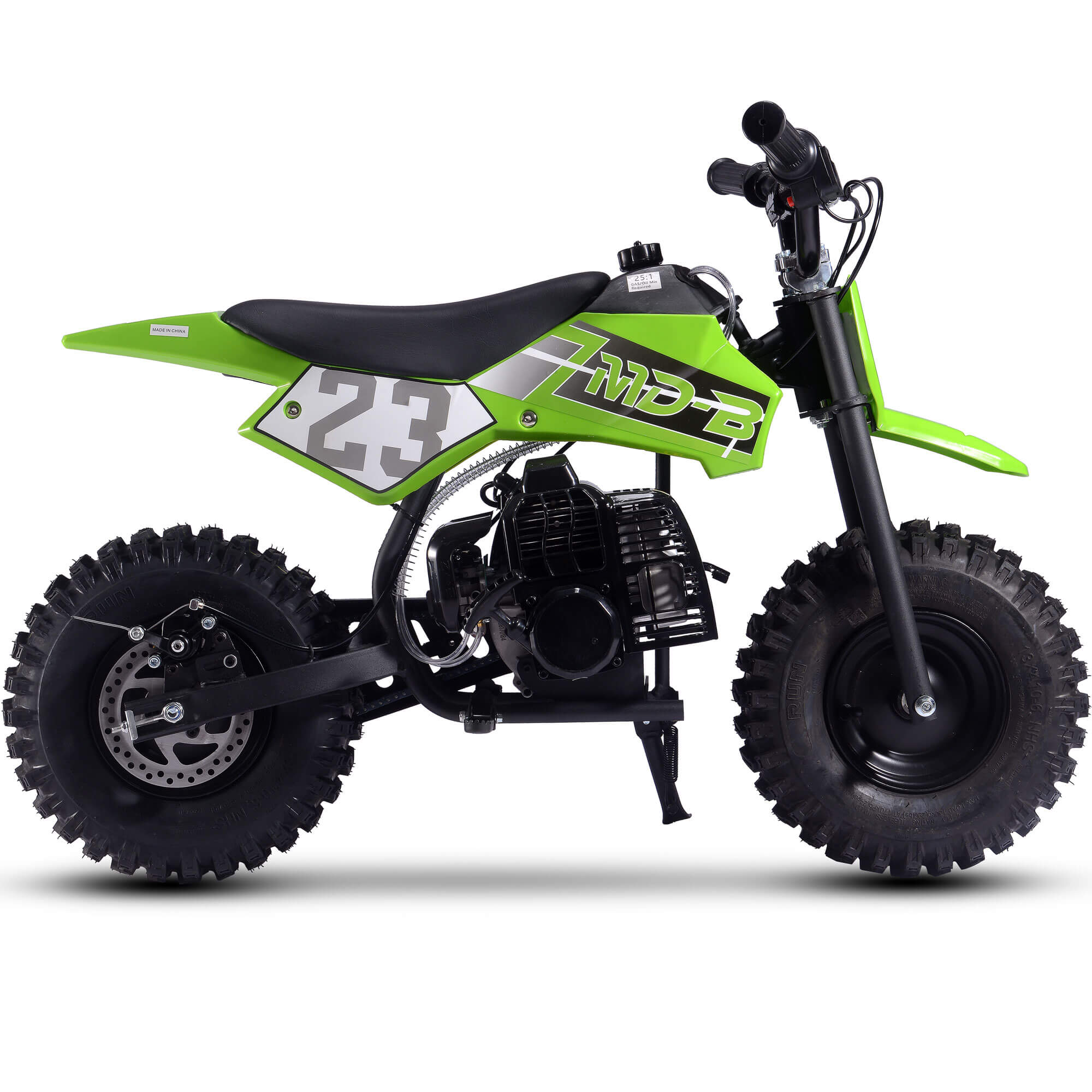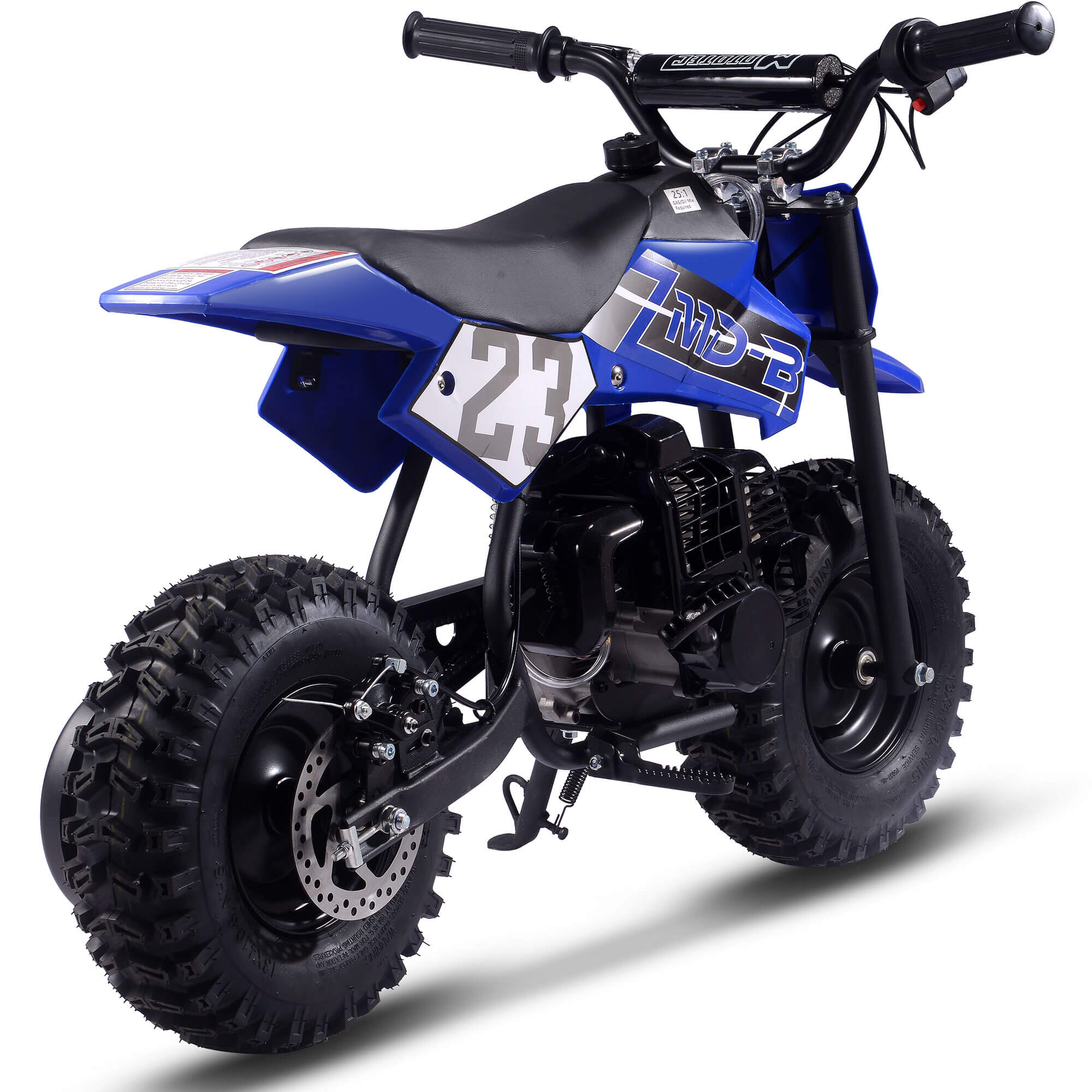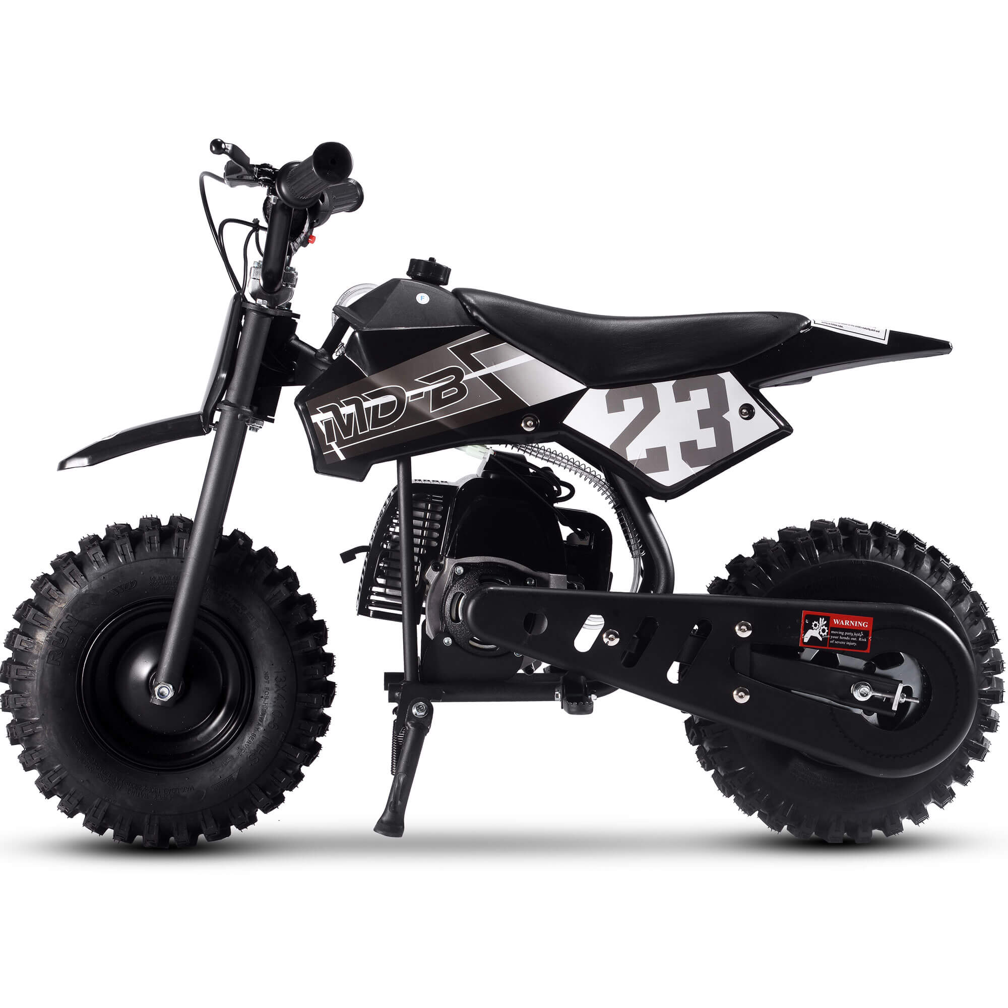 The MotoTec BIG Supermoto 50cc 2-Stroke Suspension Kids' Gas Dirt Bike, now featuring larger knobby tires.  The perfect dirt bike to start your kid's adventure.