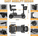 • VERSATILE TERRAIN NAVIGATION: With a 250W motor, large shock-absorbing wheels (9" front, 10" rear) and 2.76" ground clearance this all terrian mobility scooter ensures smooth rides on various surfaces.