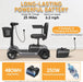 • 25 MILES ON SINGLE CHARGE: With a high-capacity 24V 20Ah battery, this mobility scooter for adults can travel up to 25 miles on a single charge. The removable battery offers two charging options: on-board and off-board for added convenience.