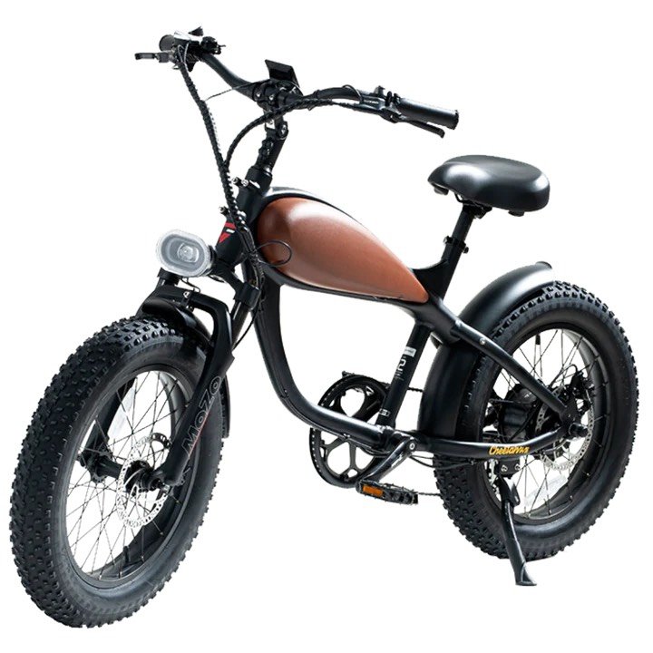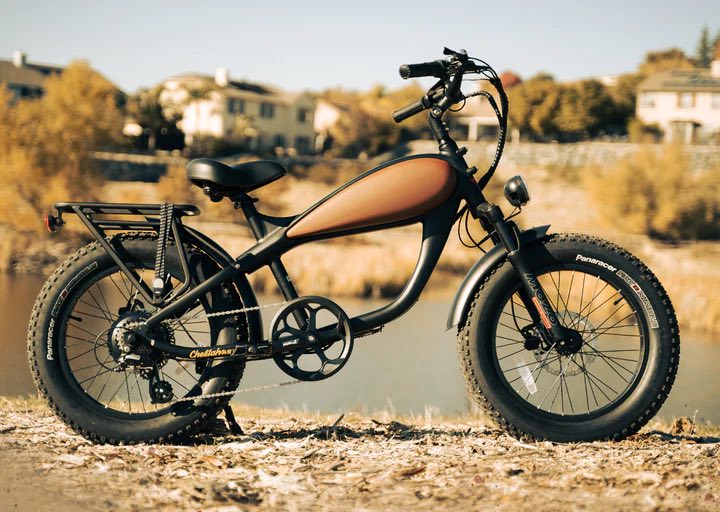 The Revi (previously Civi) CHEETAH MINI Cafe Racer Fat Tire Vintage Cruiser Electric Bike has a classic look.