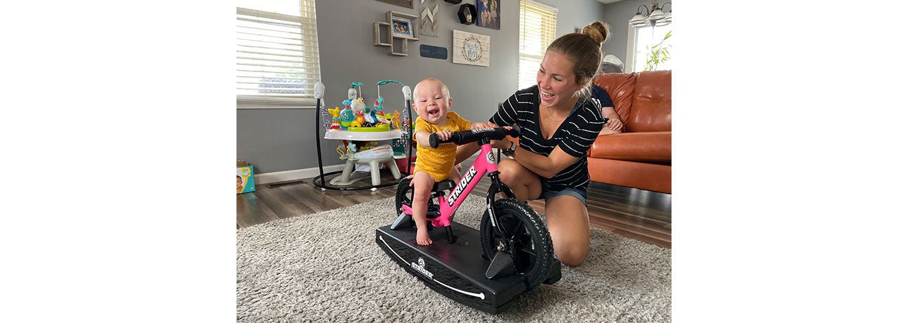 The Strider Rocking Base PROCKBASE-12-BK attaches to a Strider Balance bike and gets them rocking in place!