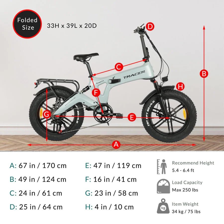 The Tracer KAMA 2.0 750W 48V 20" 7 Speed Mag Wheels Folding Fat Tire Electric Bike seamlessly integrates rugged capabilities, superior comfort, and affordable cost in an e-bike.