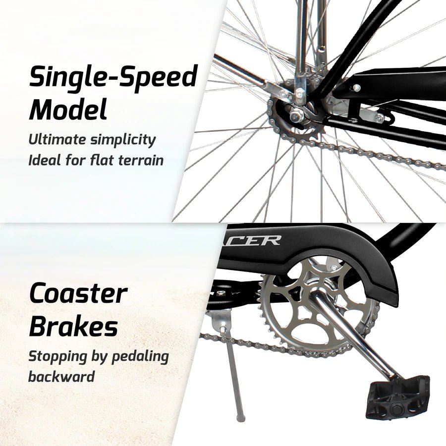 The Tracer NOVA 26" Men's Beach Cruiser Bike is the perfect bicycle to take to the beach, boardwalk, and around the neighborhood.