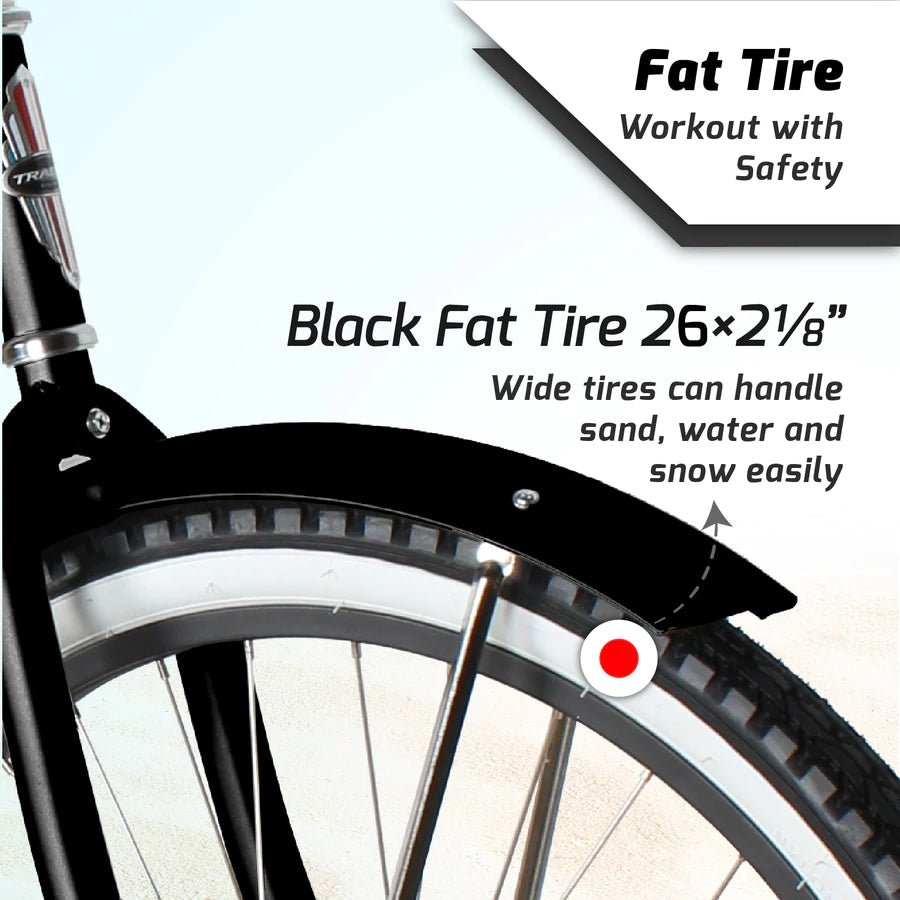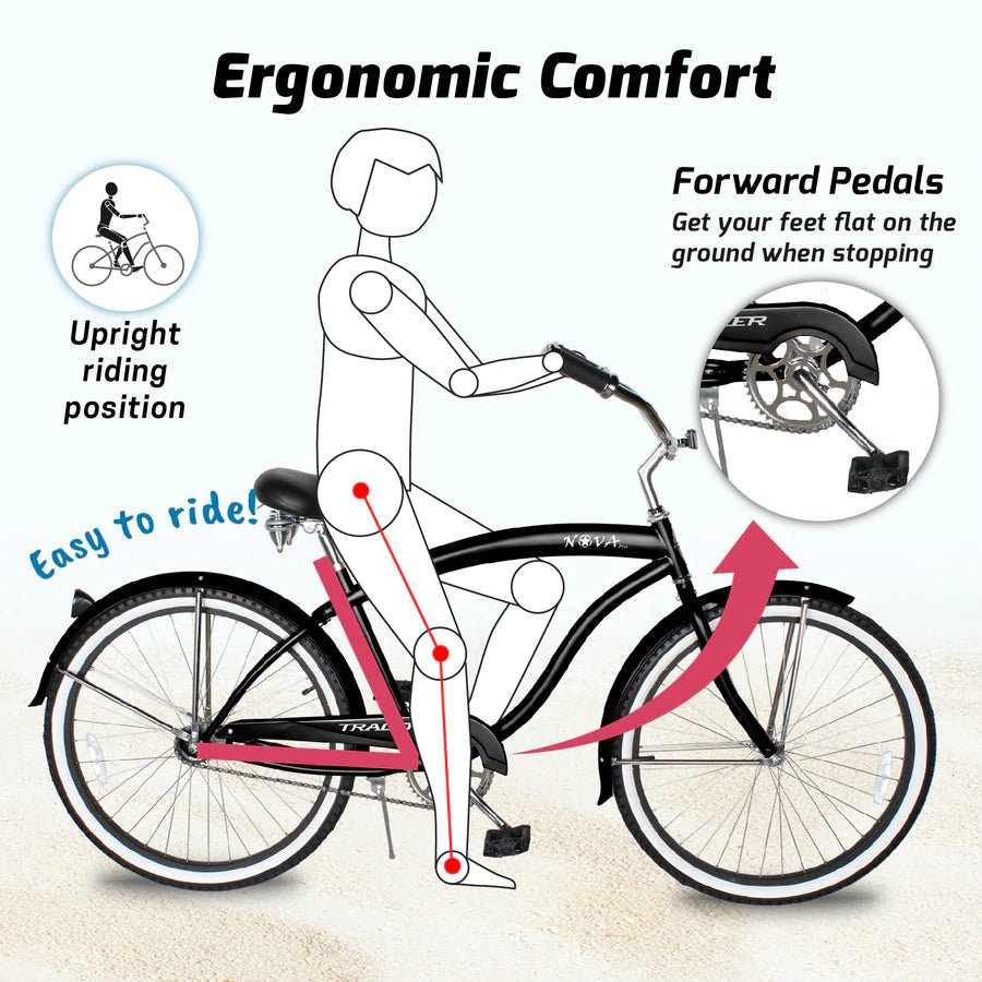 • COMFORTABLE RIDE: The TRACER Nova beach cruiser is built for your comfort and relaxation. 26"×2.125" Inch Wheels, adult bicycle tires, enough to meet different kinds of rolling, whether a casual riding with families, friends, or for commuting use. You get to choose two-toned color options that suit your personality.