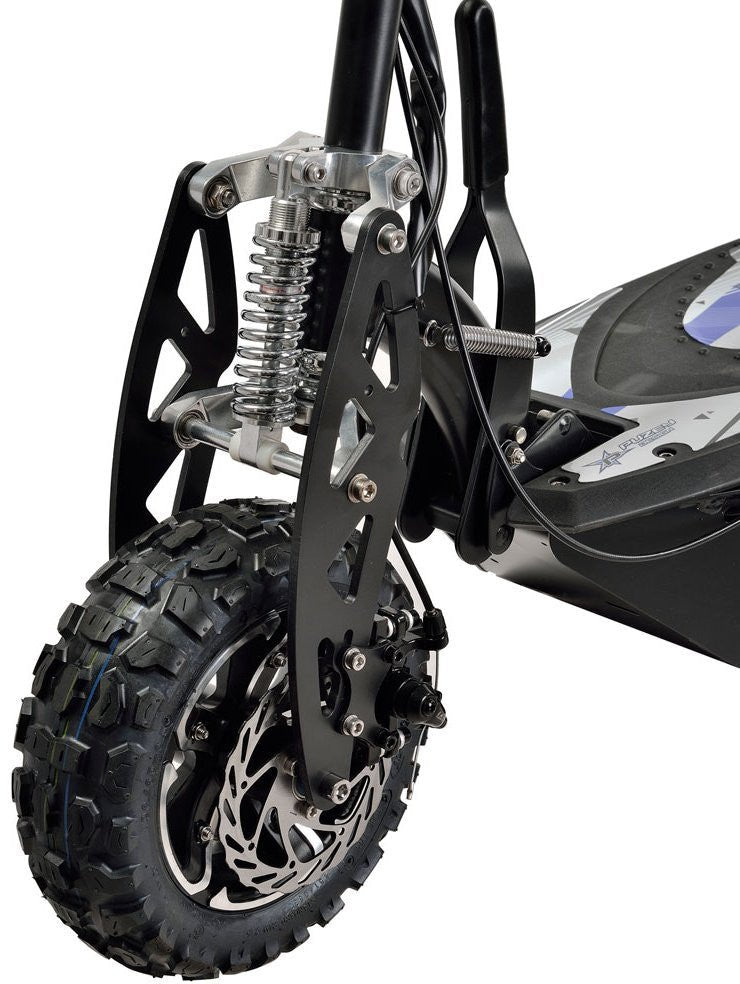 Comes standard with a quick release seat, foldable locking frame, front and rear lights, large 12" knobby onroad/offroad tires and key ignition, this scooter does not disappoint!