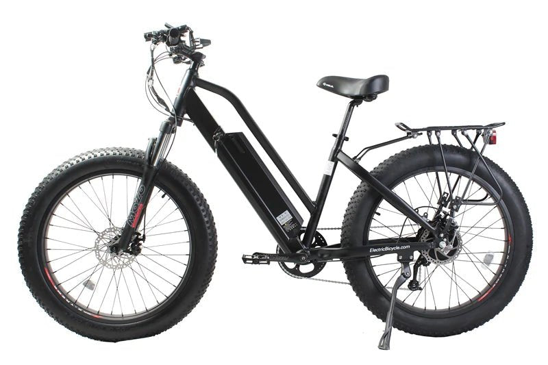 The X-Treme Boulderado 500W 48V Lithium Powered Electric Fat Tire Step-Through Mountain Bike is a Lithium Battery powered Electric Bicycle cranking out 500 Watts from the Bafang High Torque Zero Resistance Clutch Motor.