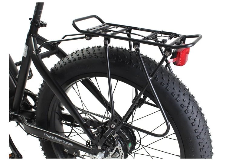 Front & rear Tektro disk brakes are standard on the Boulderado Electric Mountain Bicycle along with true VELO Brand Hand Grips & Mountain Bike Seat.  It comes standard with a free rear cargo rack and high quality beverage holder.