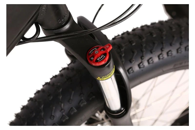 The 100% hand welded lightweight aluminum frame bicycle has Atlus Shimano 9-Speed Gears & Shifting System, oversized MOZO Front Hydraulic Suspension, aluminum rims with quick release axle on the front and a water proof quick disconnect on the rear and oversized Kenda 26 x 4.0 tires.
