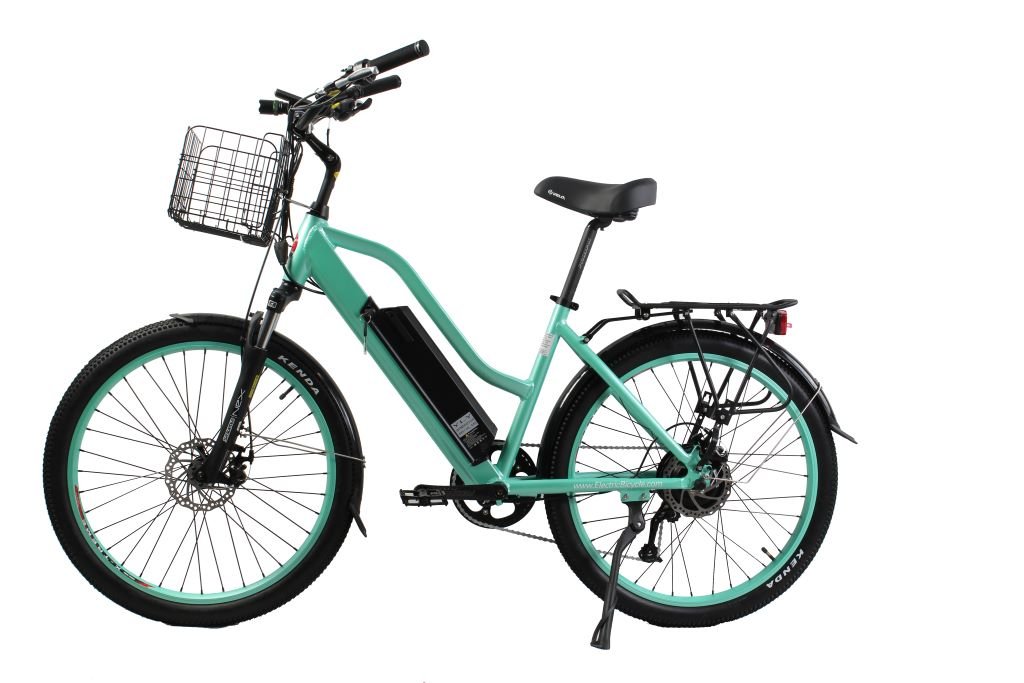The Catalina 48 volt women's frame beach cruiser electric bicycle is a Lithium Battery powered Electric Bicycle cranking out 500 Watts from the Bafang High Torque Zero Resistance Clutch Motor with Digital Torque Sensor.
