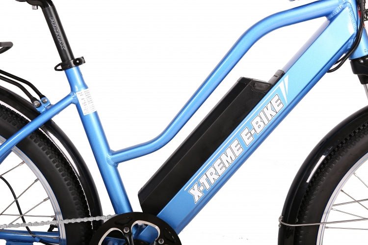 The X-Treme Catalina 48V long range high power step through beach cruiser e-bike has advanced features and an all powerful 500W motor.