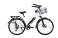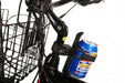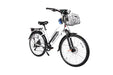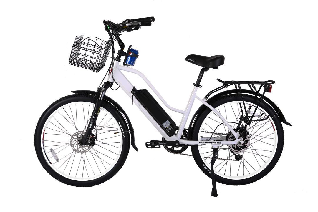 This electric beach cruiser bicycle comes standard with a free folding basket that can be hung on either the front handle bars or on either side of the rear rack.  A free beverage holder comes with your bike as well.